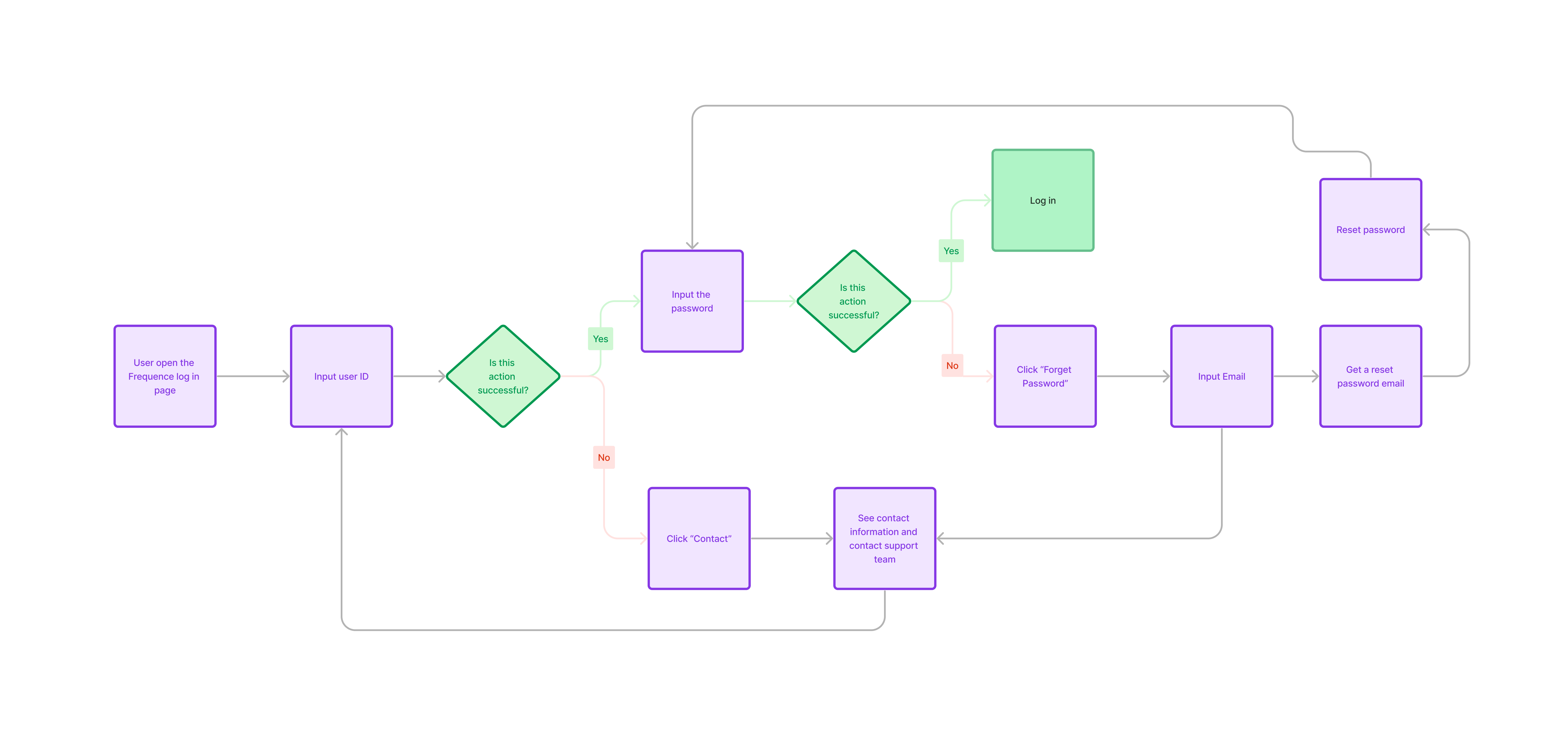 The Input Error rate was 6% and the Forgot Password Request Rate was 12%. Frequence original log in page didn't offer password visibility at all, so users could not see their passwords and were unable to know if they have made an input error. This leaded to a higher than average password reset rate.